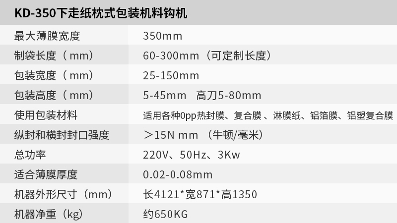 KD-350下走紙枕式包裝機(jī)料鉤機(jī)